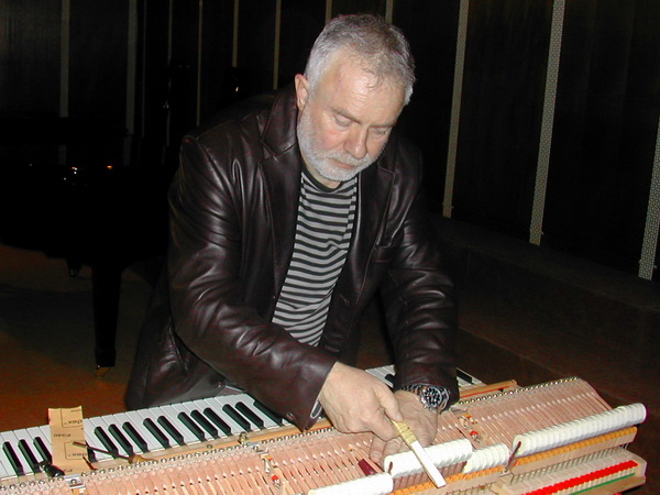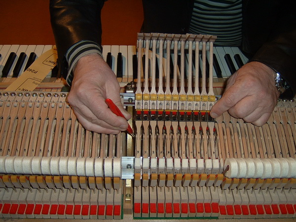 Klavir bi trebalo servisirati svakih šest meseci, i to s proleca i s jeseni. Tada se, zbog oscilacija temperature vazduha, materijali u njemu sire i skupljaju, te se onih 240 do 260 zica, sto trpe opterecenje i do 27 tona, zatezu i labave, pa ih treba dovesti u red. Glavni posao oko klavira jeste rasporediti kineticki teret koji se seli u toku sviranja. Zato se kaze da klavir "dise".